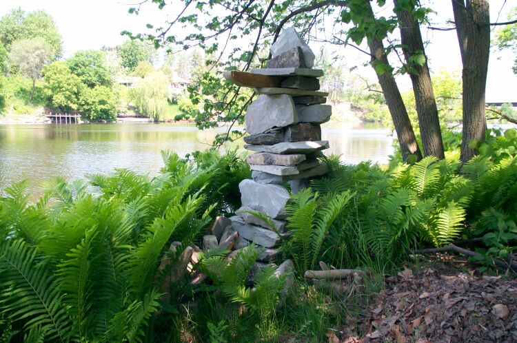 View of the Inukshuk in the summer, he is now King of the Ferns.