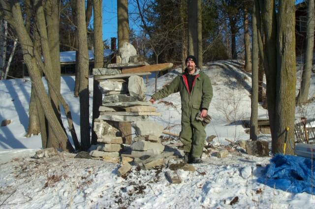 Who says you can't do landscape work in the middle of February in -20C weather? Some pictures of the Inukshuk (Inuksuk, Inushuk) that me and Kris made.
