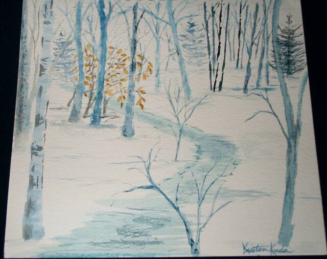 Water colour Kris painted, scene is from the path in the near by woods.