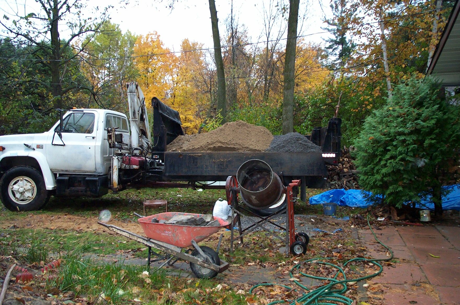 After doing this one wall I'm not sold on the idea of slip forming a stone wall. I bought the book referenced here and tried to follow the instructions. What I didn't like in the book were that the stones appeared to be set on edge. With the bedding plane perpendicular to the wall. This doesn't usually look like a real stone wall and can lead to spalling as water can get in behind the layers of stone and then freeze/thaw will pop parts of the stone off. So that was one thing I did different. I also didn't "slip" the form up, instead we built enough forms to do the whole wall. We had to do that since it was getting cold (right around the magic 5 degrees C for concrete) and I didn't want to remove the forms before the concrete had time to set. So I didn't get to see how things were going with each layer. If I did maybe I could have changed things a bit. While I don't hate the look, it sort of looks like "stone stuck in concrete". None of my friends will see any difference to a real stone wall, so it's good enough for the stairs to the basement. What I do like about slip formed walls is the ability to form the wall with reinforced concrete.